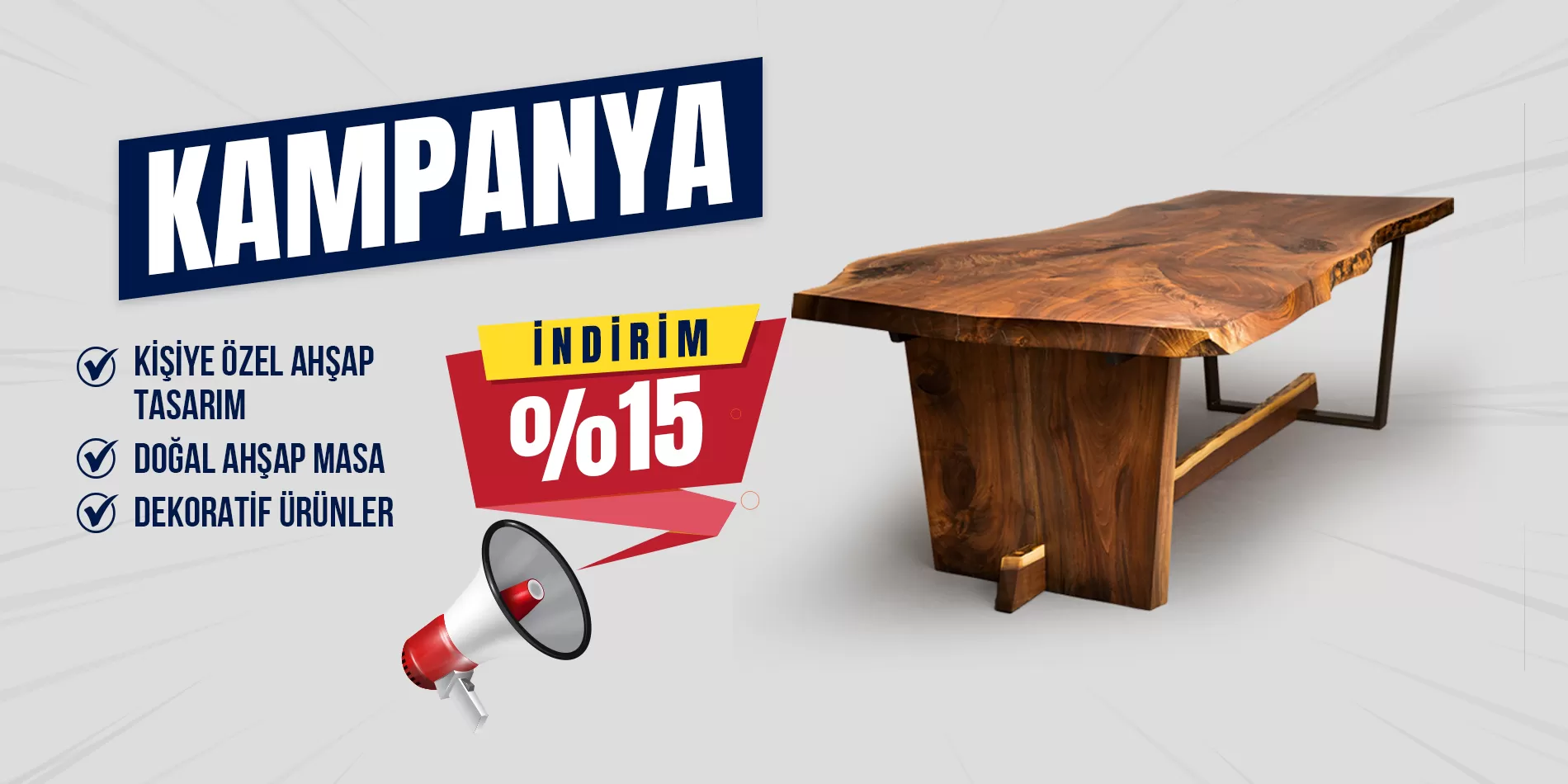 Akın Wood Design, doğanın en değerli armağanlarından biri olan ahşabın güzellik ve sıcaklığını tasarımlarında yaşatıyor. Ahşabın doğallığını koruyarak, her bir parçayı özenle seçiyor ve işçiliğimizle eşsiz eserler yaratıyoruz. Ahşabın benzersiz dokusunu, yaşam alanlarınıza ve mekânlarınıza estetik bir hava katmak için kullanıyoruz.